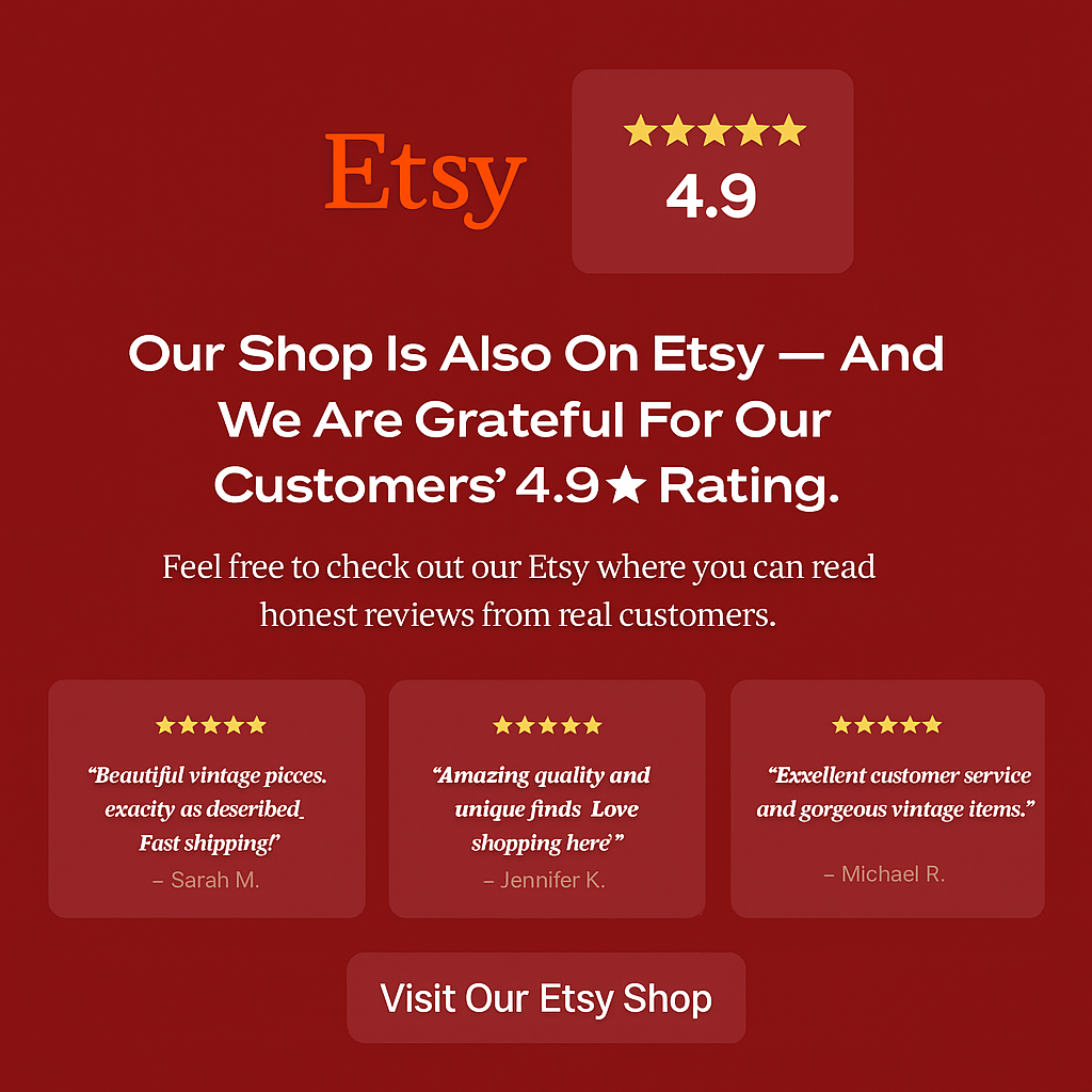We are proud to have a 4.9⭐ Etsy rating, earned from real reviews from satisfied customers around the world.