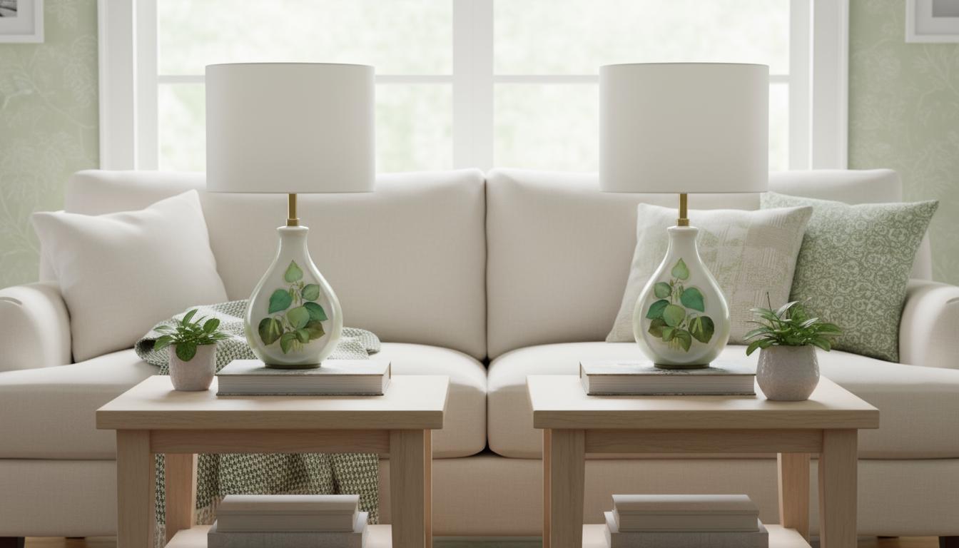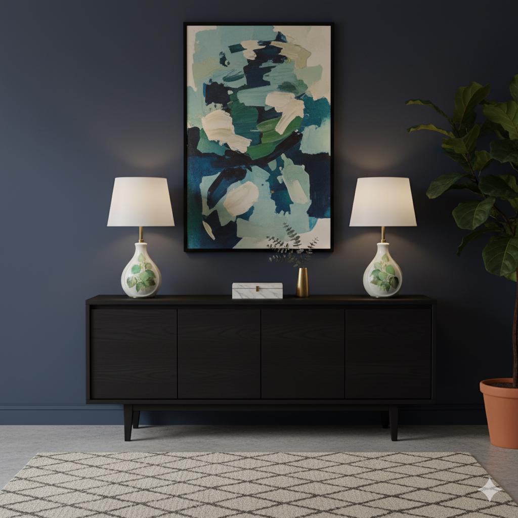 Made by Kaiser Porzellan in West Germany, the lamps reflect the brand’s renowned porcelain craftsmanship and attention to detail. The delicately rounded ceramic bases are adorned with leafy green plant motifs, lending a calm, organic presence to any space.