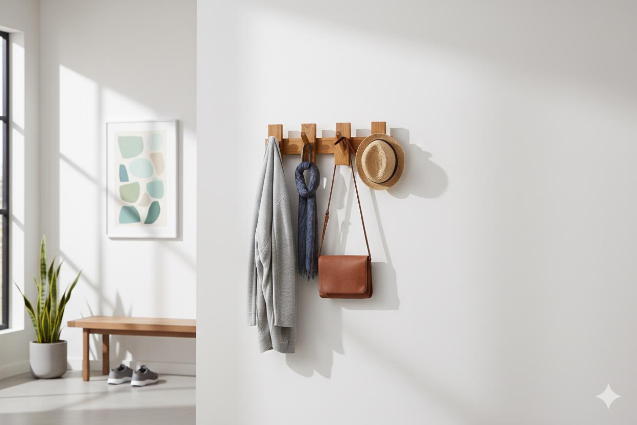 The clean lines of Scandinavian minimalism meet the timeless beauty of reclaimed solid teak wood in this unique, handmade wall-mounted coat rack. Each piece is crafted from carefully selected recycled teak, making it both environmentally friendly and long-lasting. Treated with teak oil, the natural grain and warm tones of the wood are beautifully highlighted, while ensuring durability for years to come.