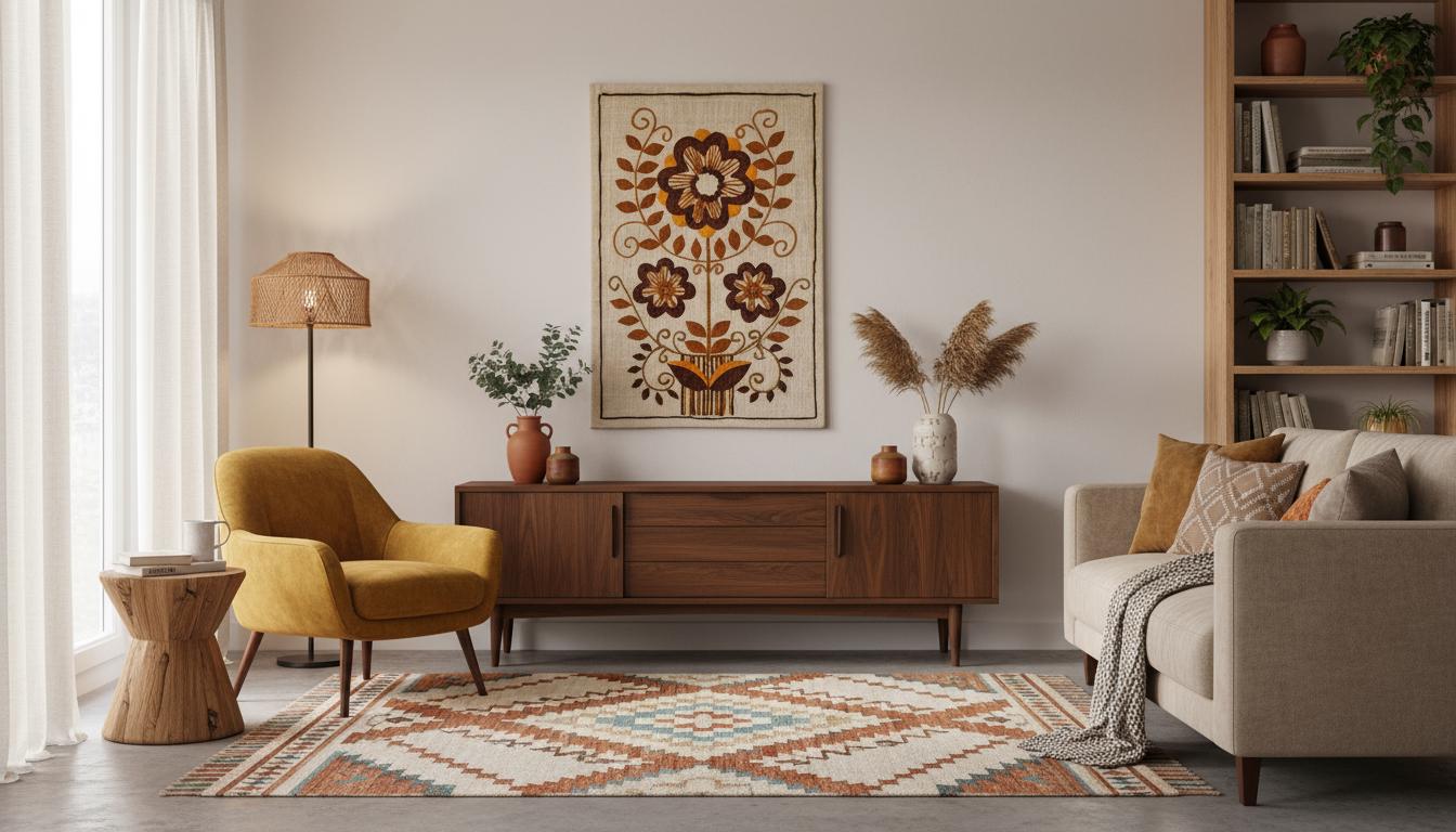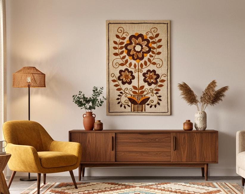 Whether styled above a mid-century credenza, in an entryway, or as part of a gallery wall, this piece holds presence without overpowering. It works beautifully with Japandi, modern rustic, Scandi, or even desert modern interiors.