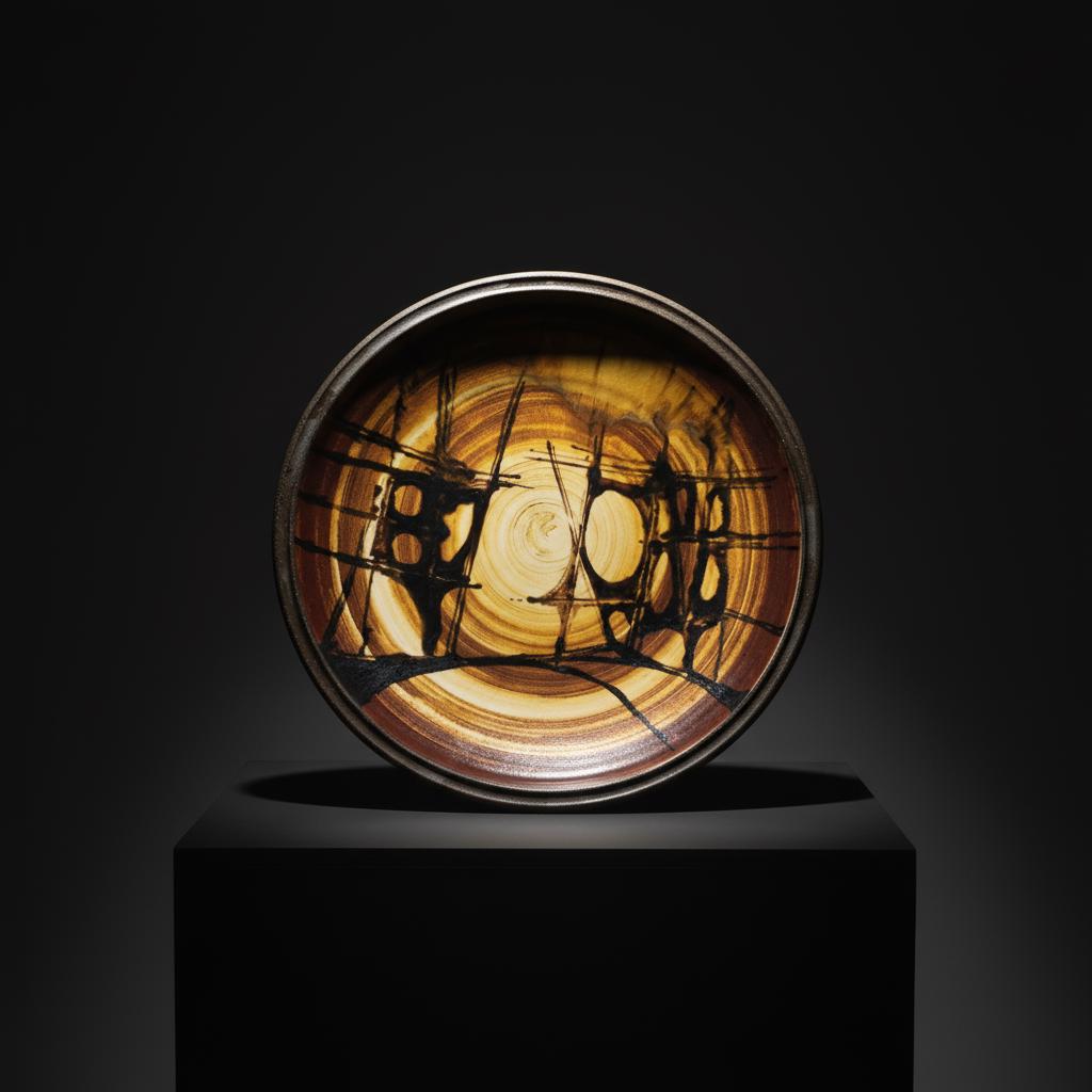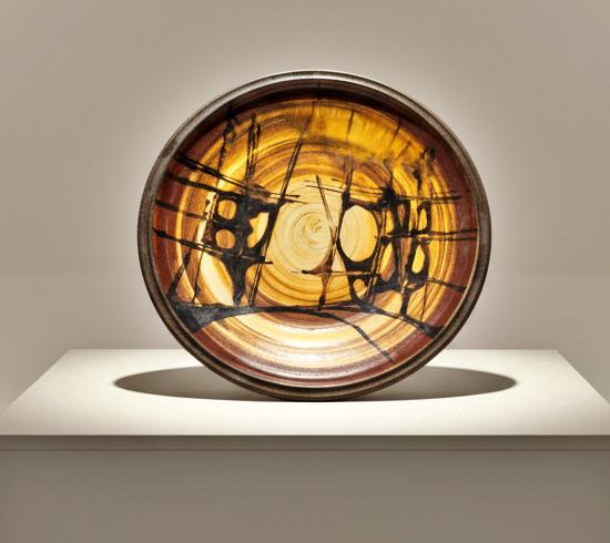 Decoration: Swirled ochre and brown glaze with bold abstract black brushwork