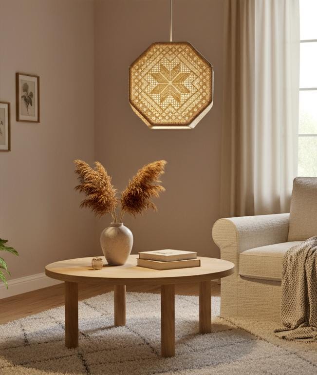 Its soft, warm glow and delicate detailing make this pendant light an ideal statement piece for any boho, Nordic, Japandi, or vintage-inspired interior. Perfect above a reading nook, dining area, or as a decorative window light, it combines functionality with timeless beauty.