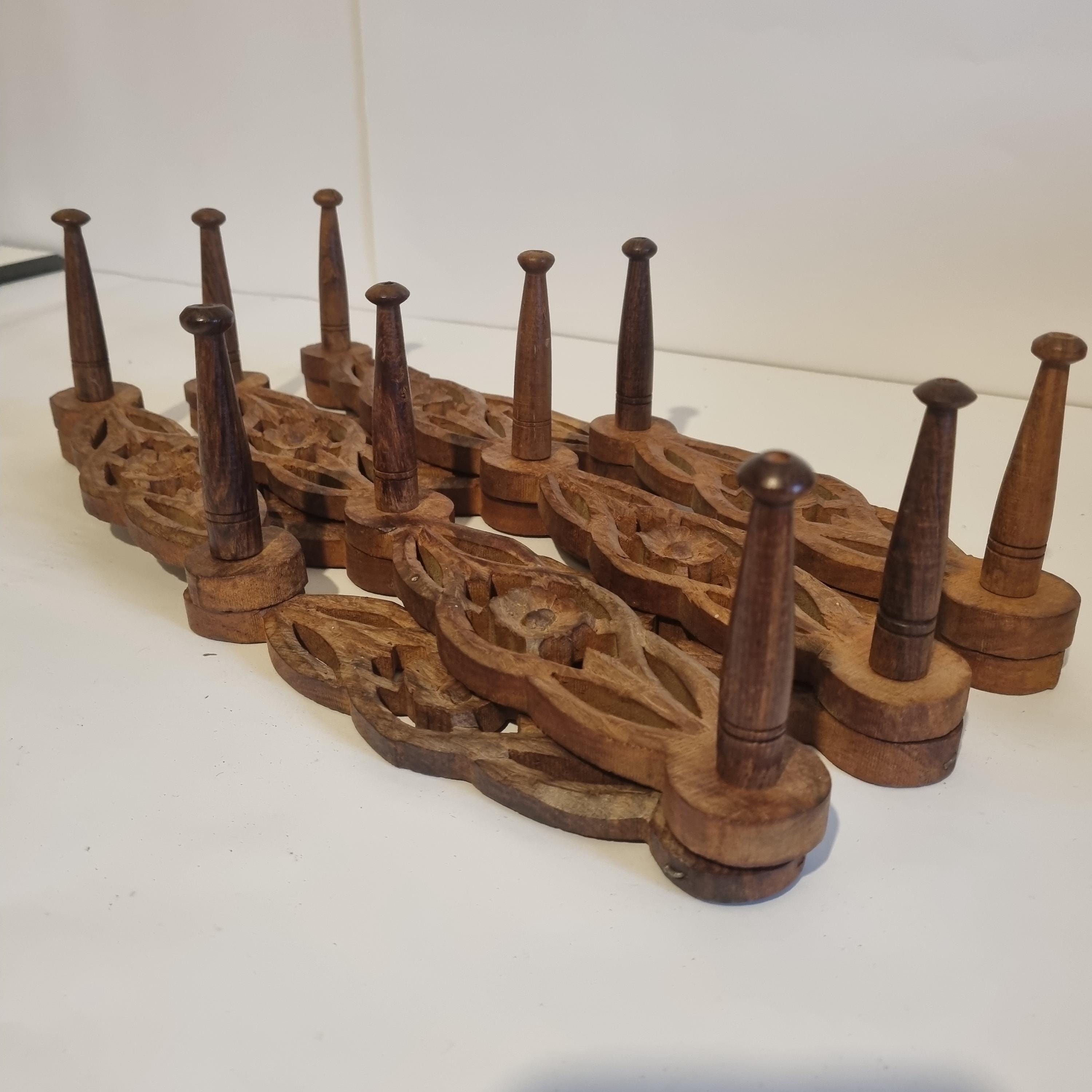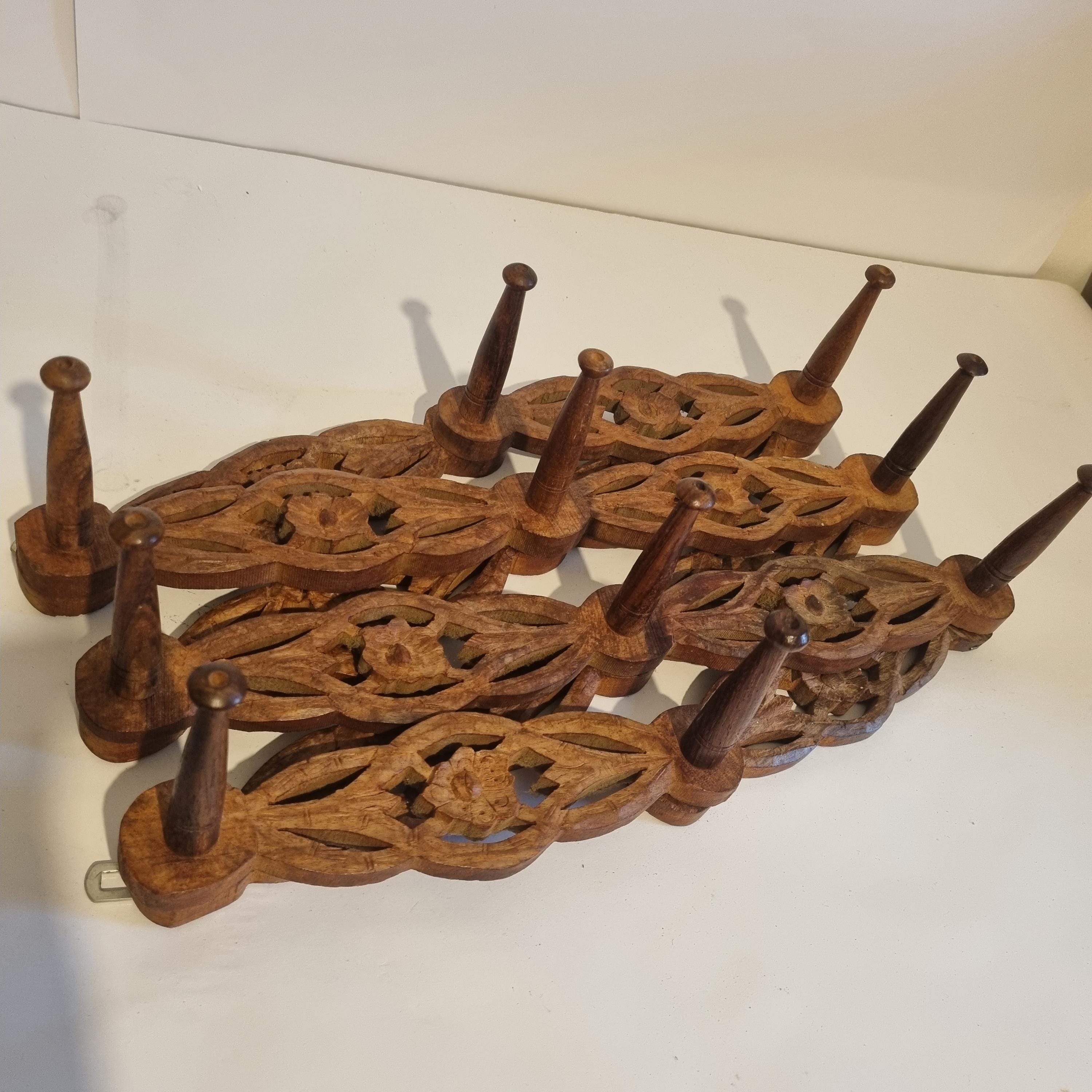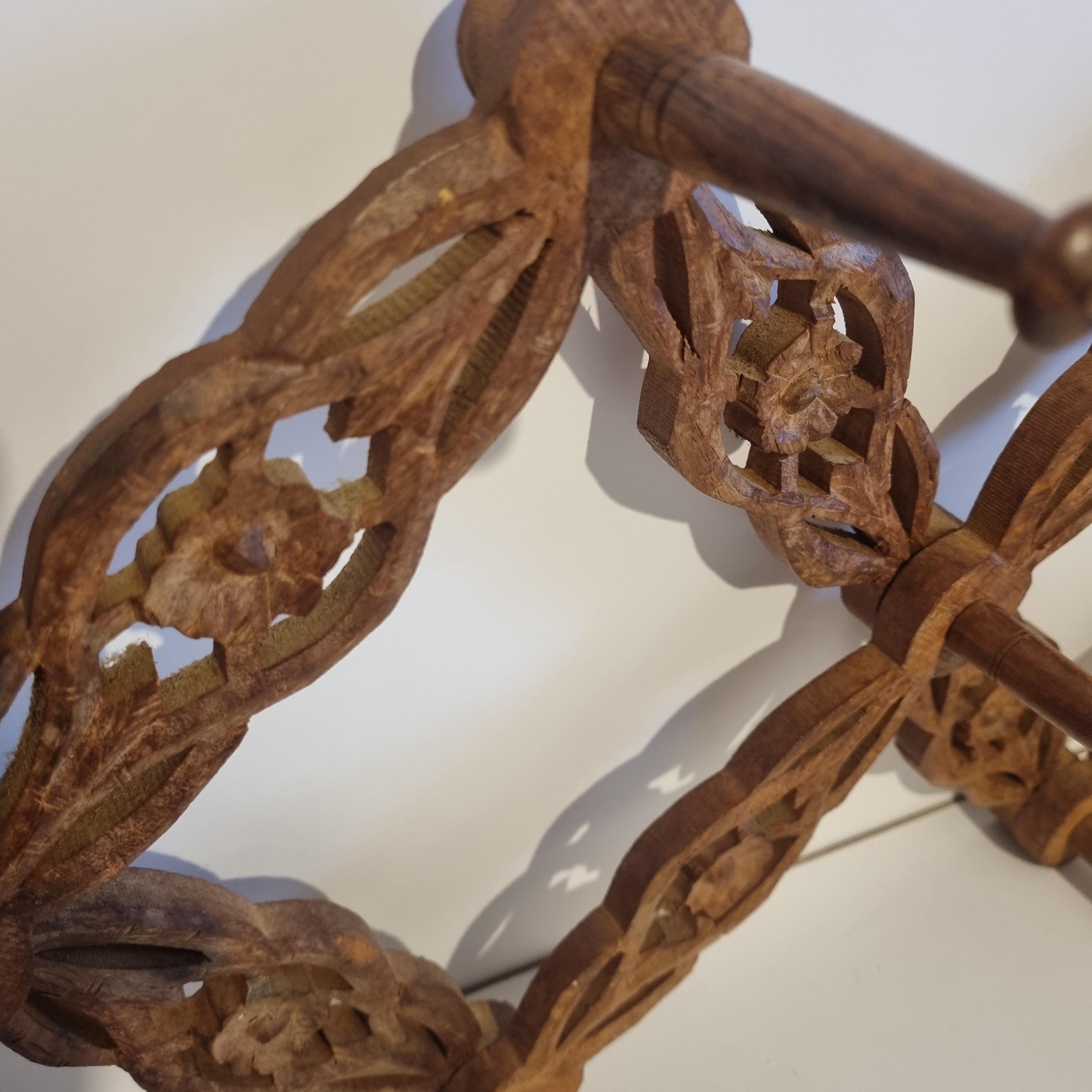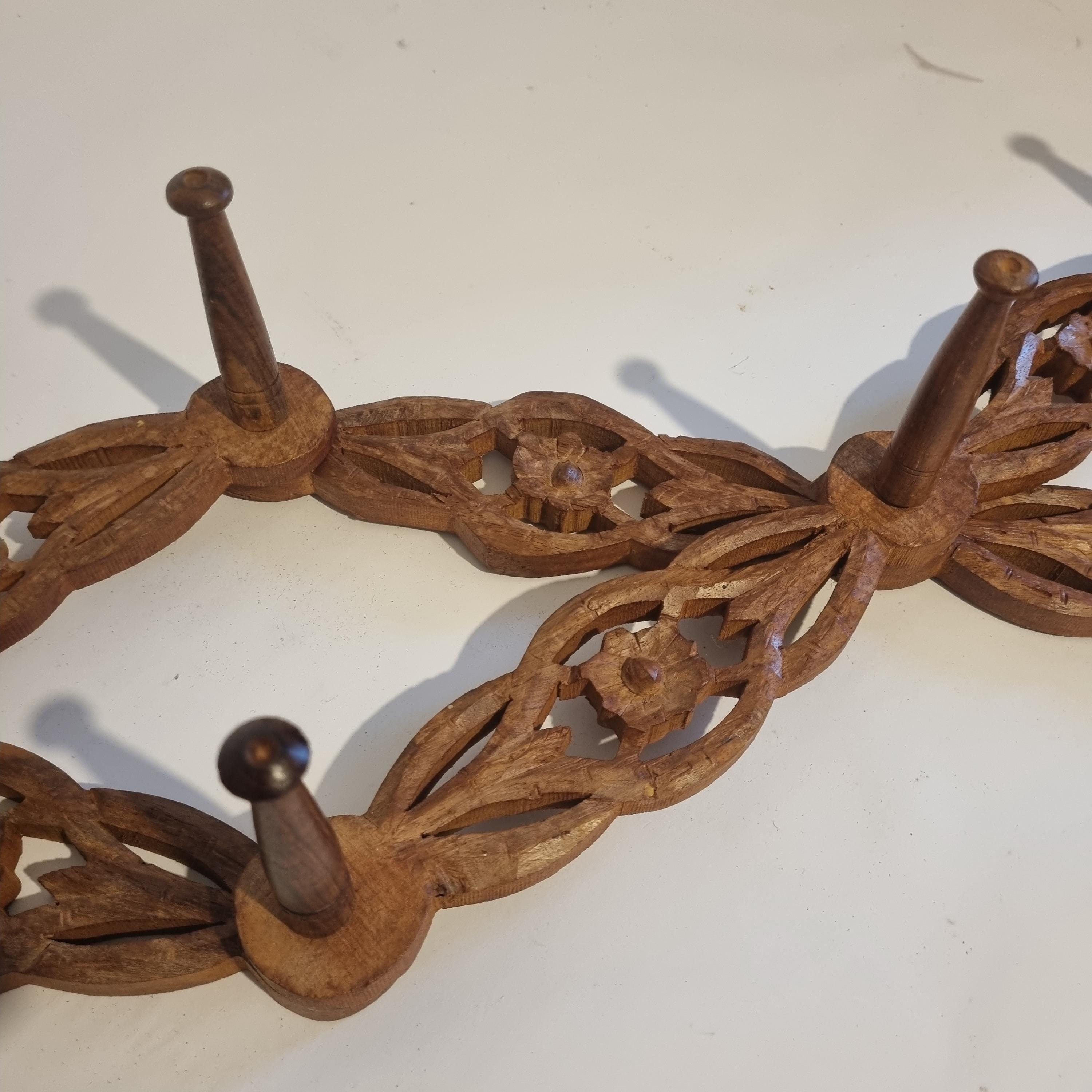 This beautifully hand-carved vintage coat rack is more than just a functional piece – it’s a decorative element for any interior. With its intricate openwork floral patterns and warm, natural wood finish, it perfectly combines rustic charm with classic elegance.