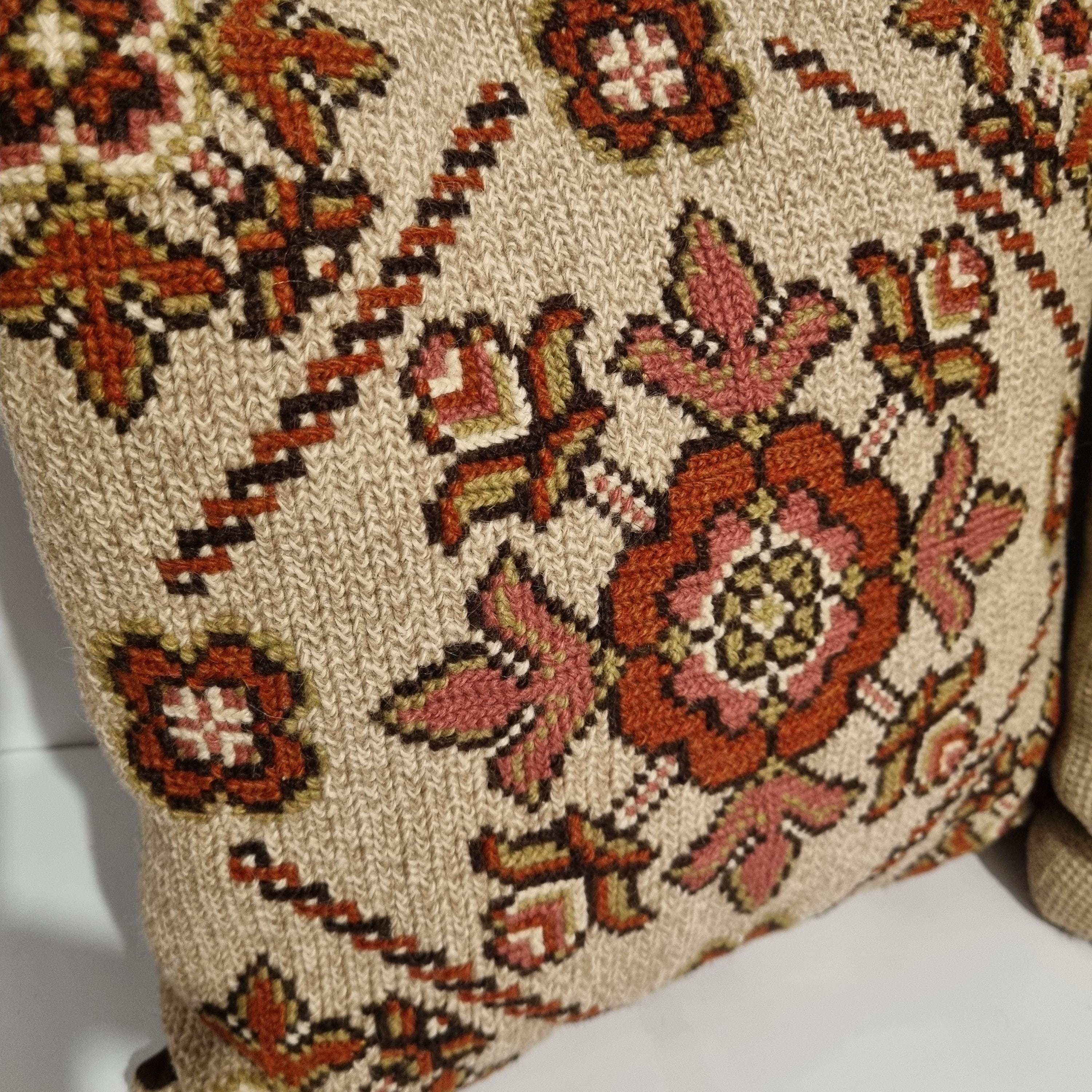 Folk Art Embroidered Cushion Covers – Rustic Boho Decor – Scandinavian Wool