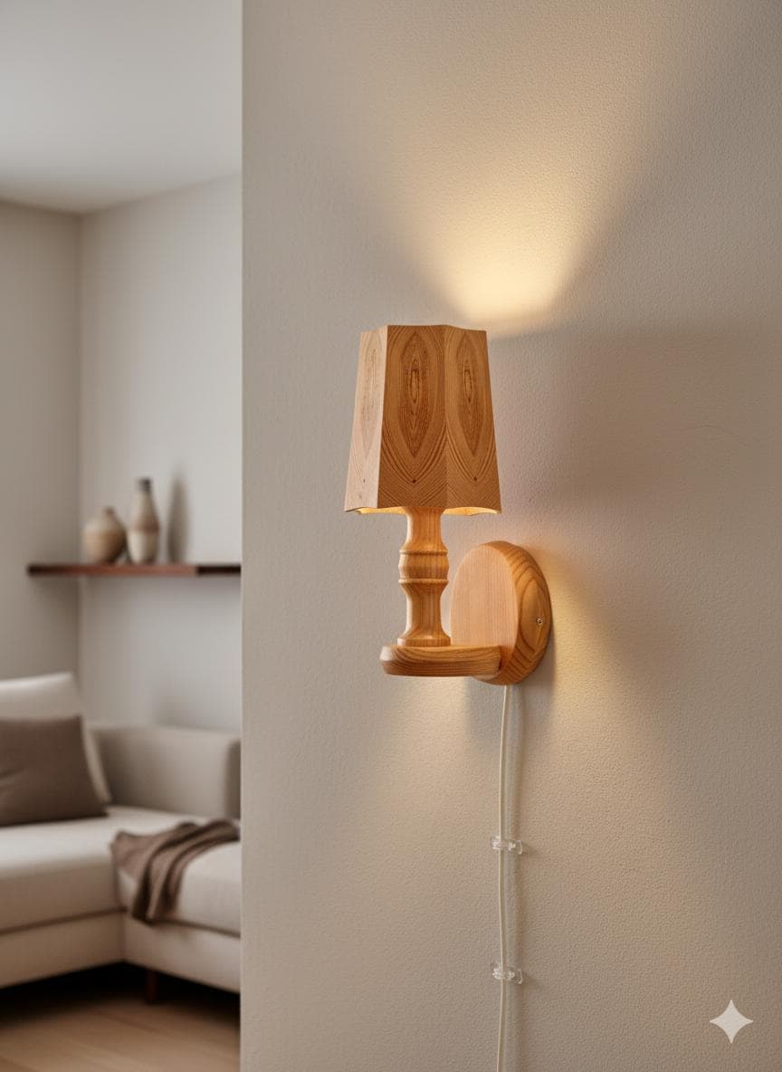 Handcrafted Solid Wood Wall Lamp — Scandinavian Natural Design