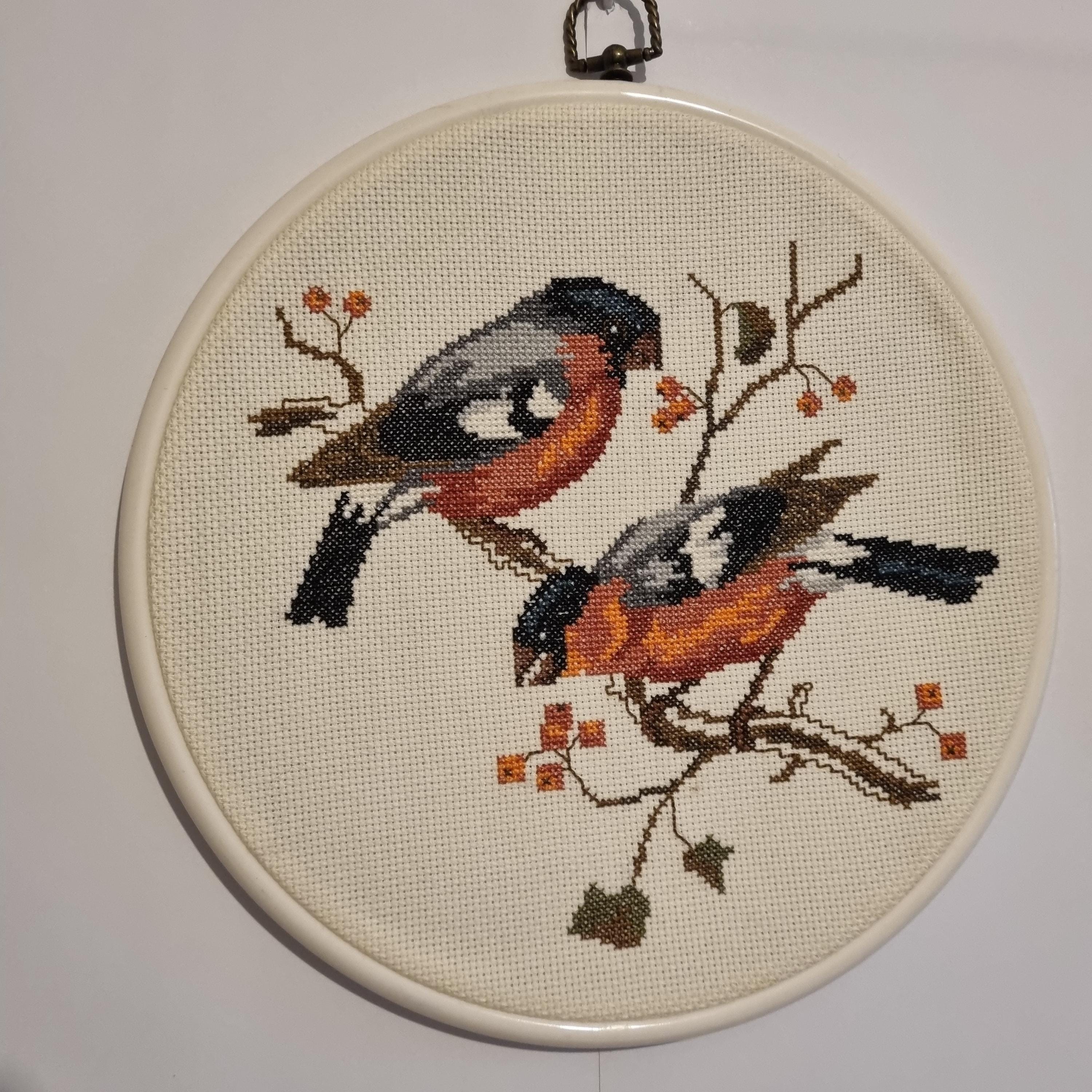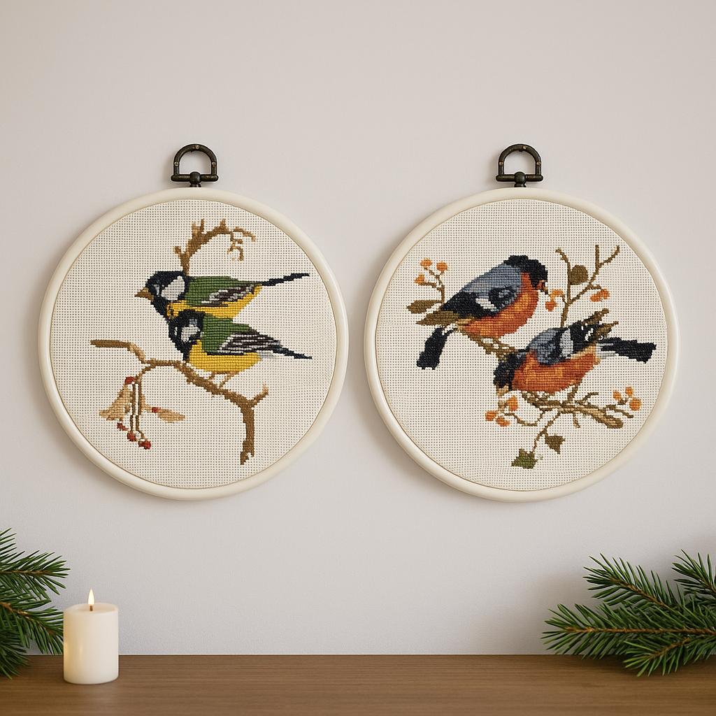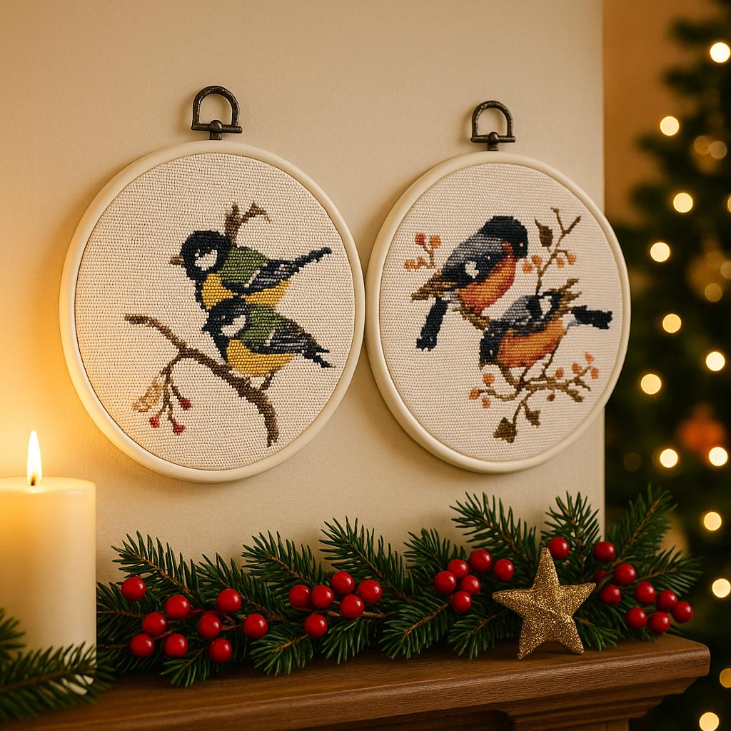 Vintage Scandinavian Christmas Embroidery Set – Christmas Bird Cross Stitch Wall Art, Nordic Holiday Decor