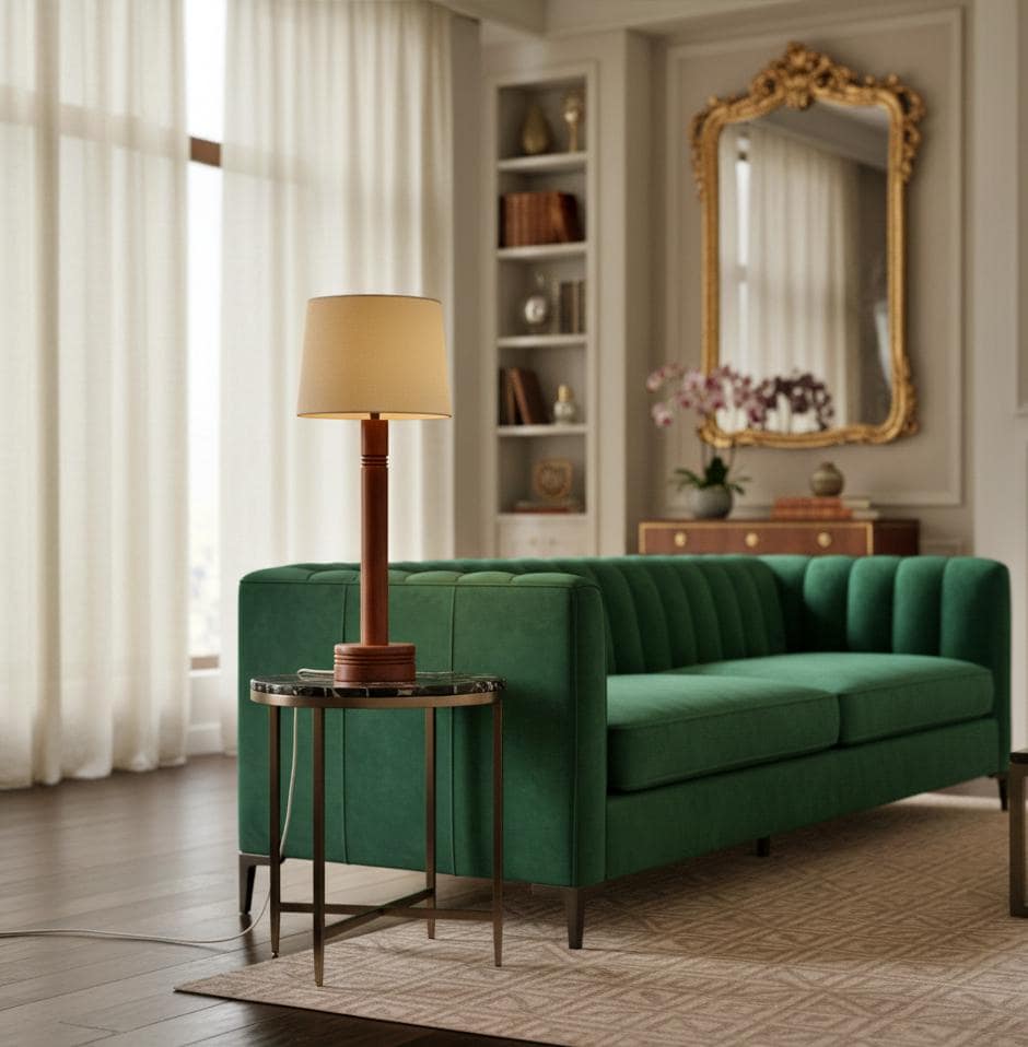 We love the warm teak grain, the finely carved ring detail on the column, and the soft diffusion of light through the original shade. It’s the kind of piece that adds depth and soul to a room – whether styled on a sideboard, bedside table, or in a cozy reading nook.