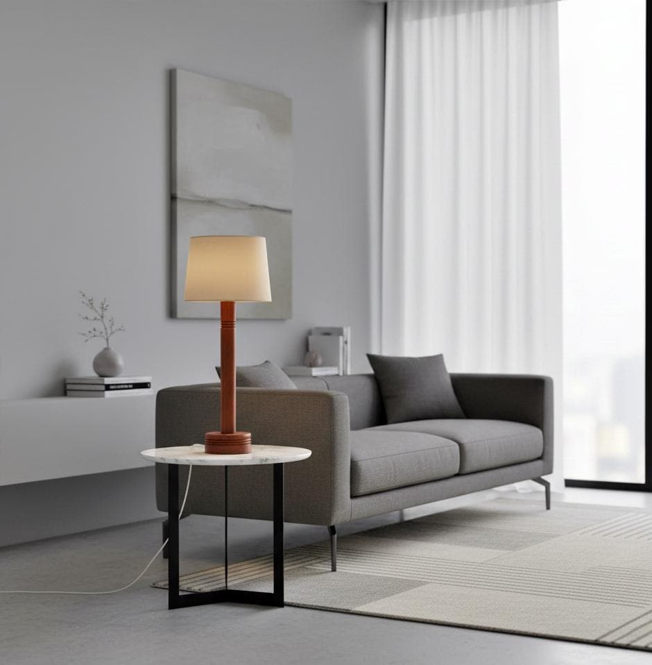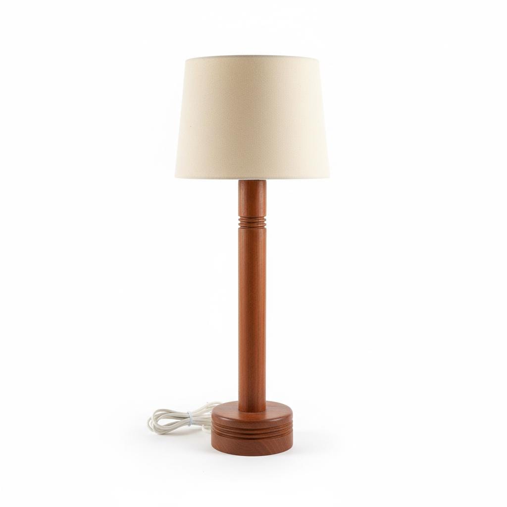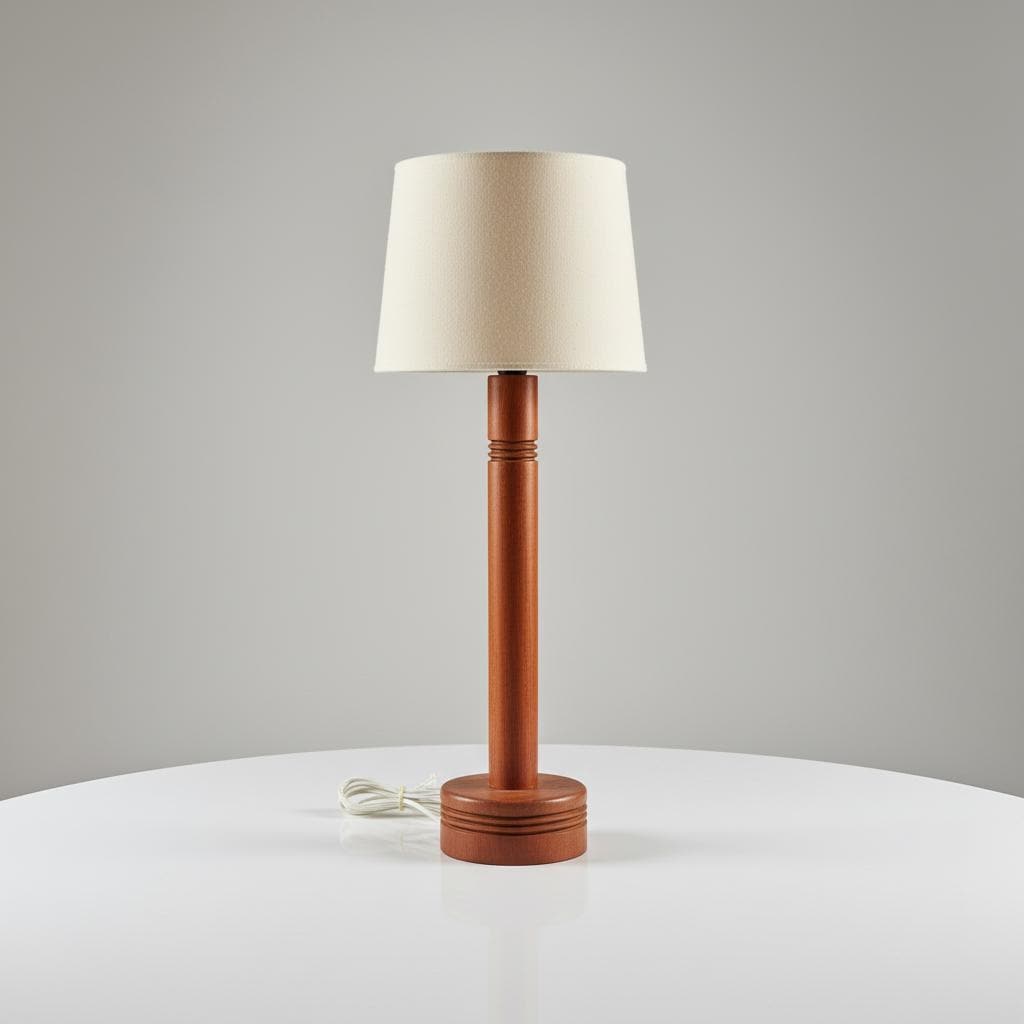 Warm, sculptural, and authentically mid-century – this vintage teak table lamp from the 1960s brings natural elegance and quiet character to any interior. With its minimalist silhouette and original cream fabric shade, it embodies the refined simplicity of Scandinavian design.