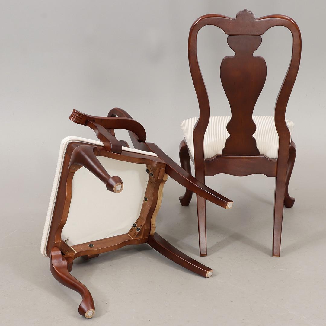 Each chair is solid, stable and upholstered in a fine ivory fabric that perfectly complements the deep mahogany tone.