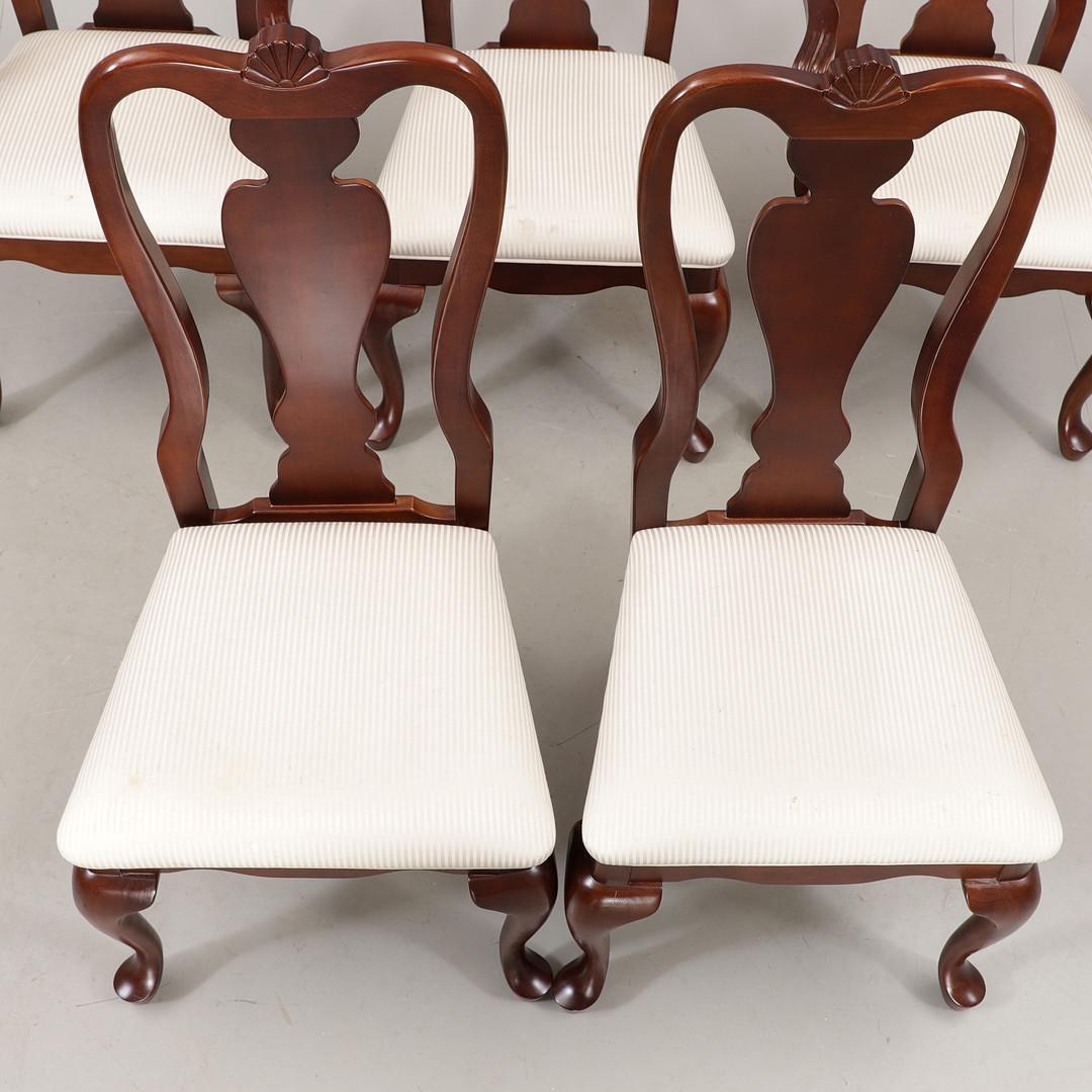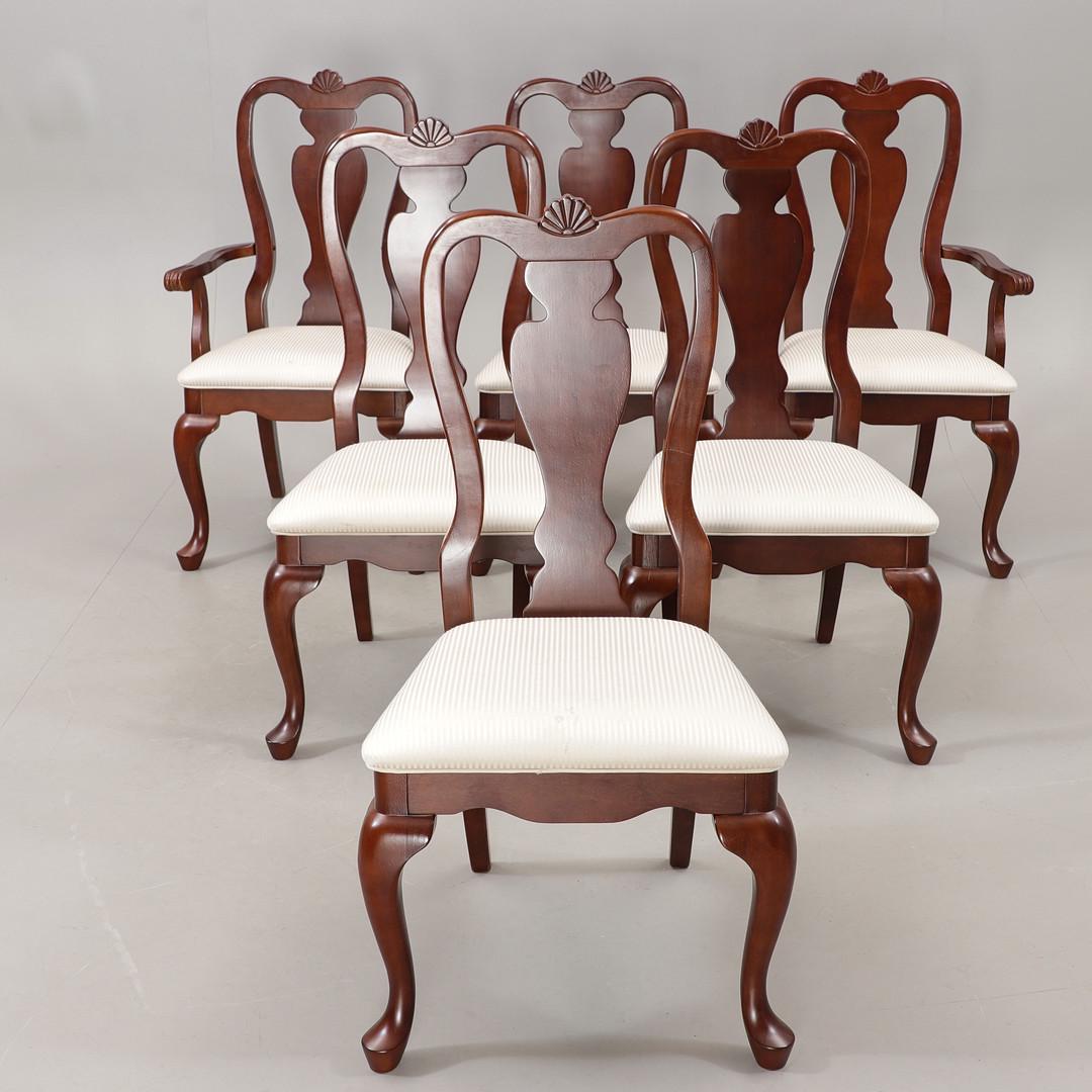 Vintage Solid Mahogany Queen Anne Dining Set • 6 Chairs + Extendable Table • Holiday Ready • Classic Dining Room Furniture