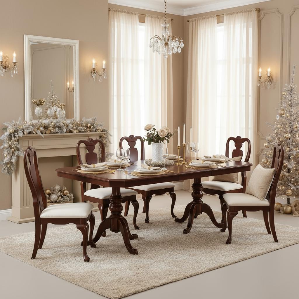 This beautiful 7-piece Queen Anne style dining set is crafted from solid mahogany—not veneer—for the durability, depth, and natural elegance that only real hardwood can provide.