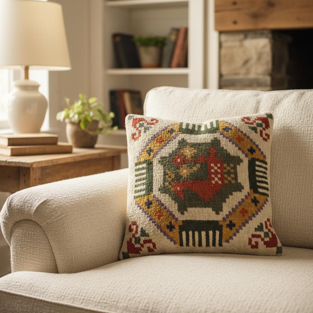 Made of natural wool with warm earthy colors, it carries the quiet, cozy character of old Swedish homes — the kind of piece that adds a touch of history and storytelling to any room.