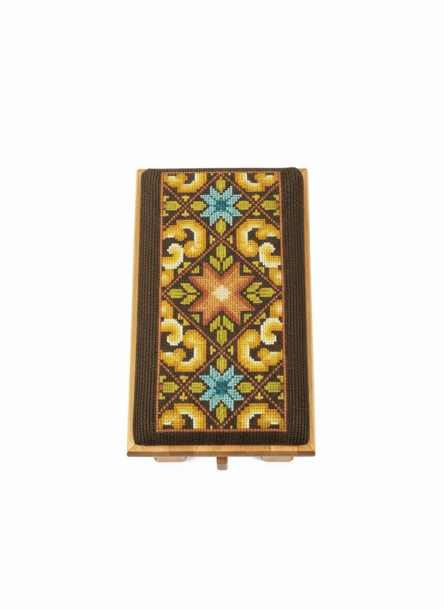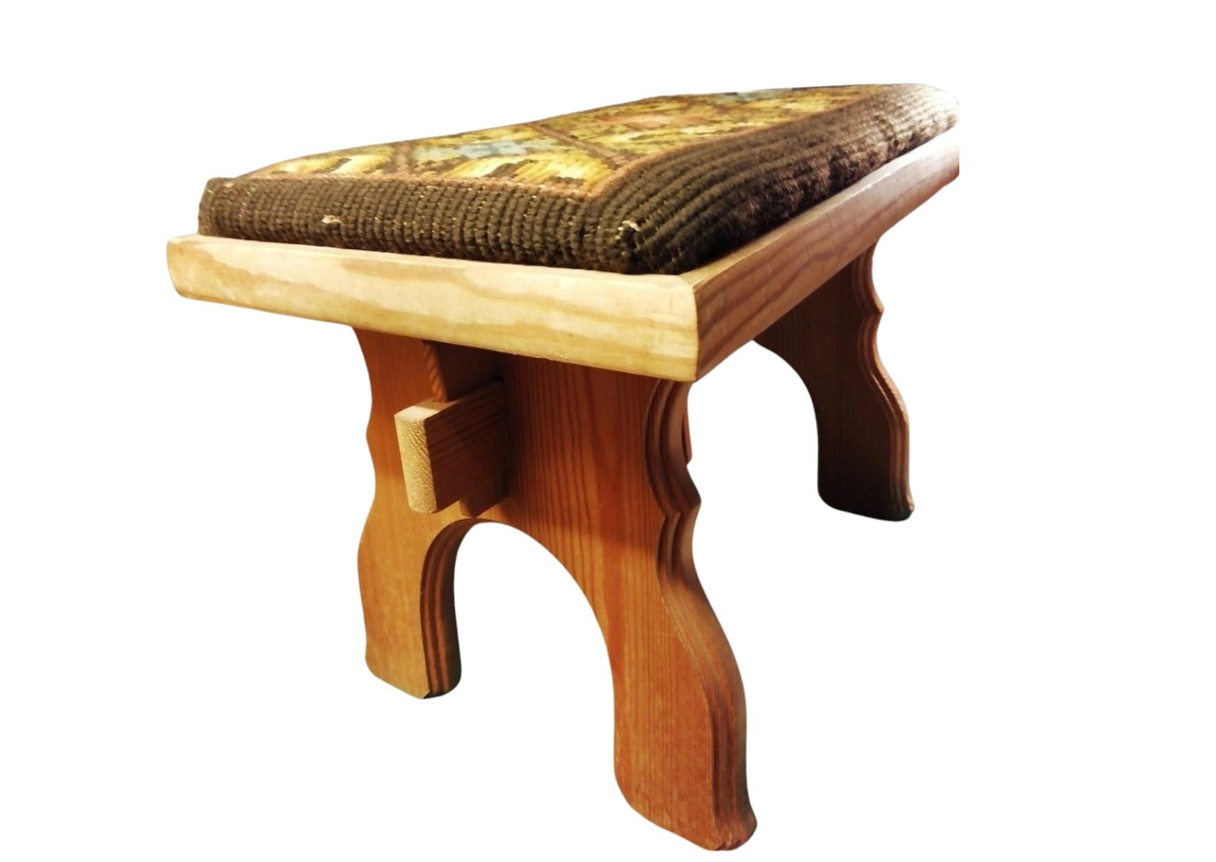 Vintage Swedish Pine Stool (Pall) – Rustic Handcrafted Bench with Tapestry Upholstery