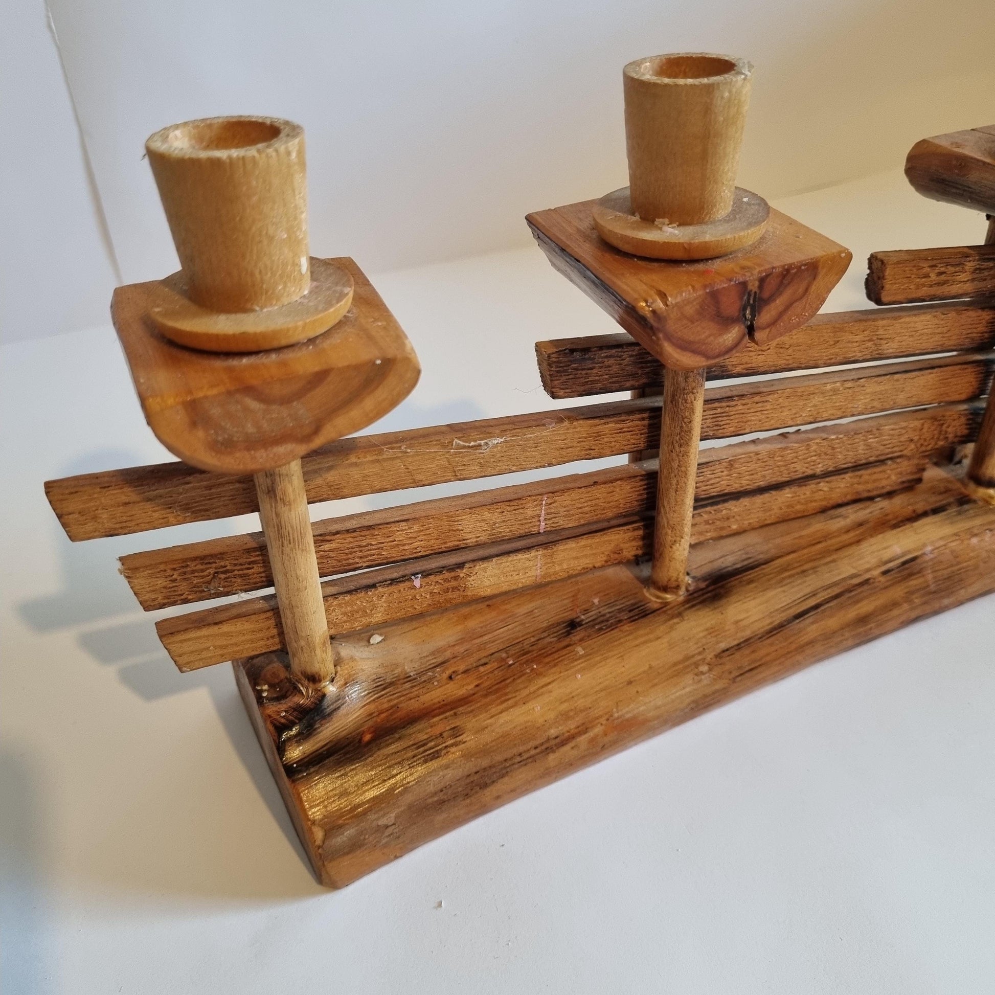 Handmade Wooden Candle Holder: Rustic Scandinavian Fence Design