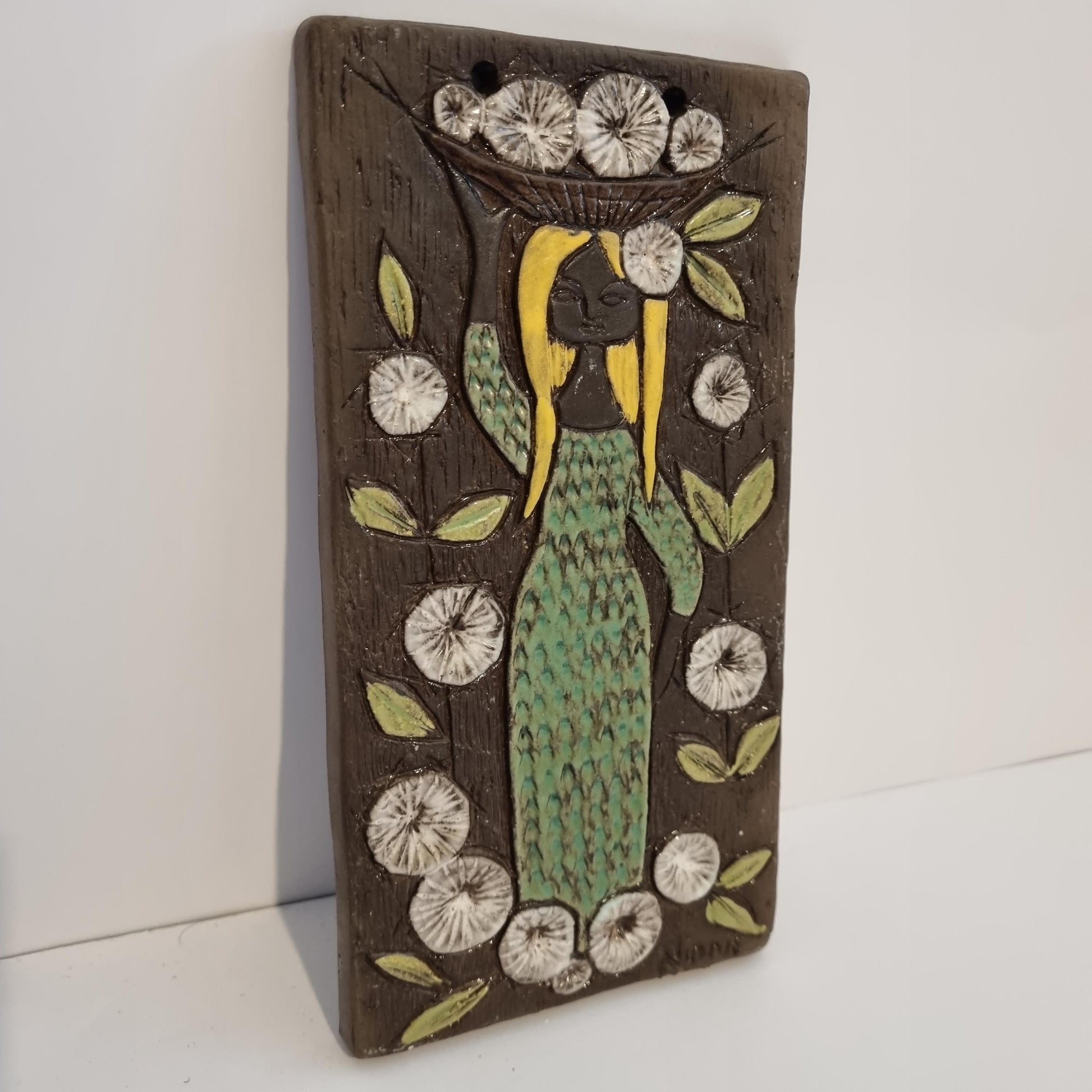 Vintage Swedish Ceramic Wall Plaque – Ninnie Keramik – Mid Century Modern Relief Art