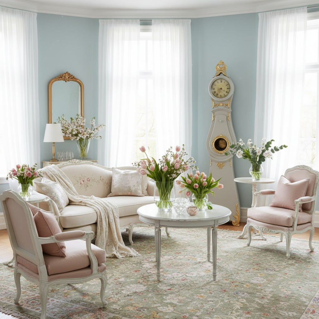 The painted surface and gilded ornaments add warmth and character, enhancing its distinctive Swedish aesthetic.